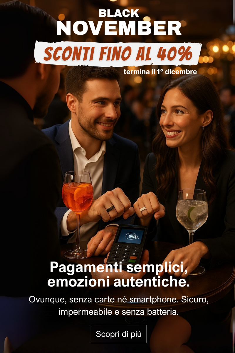 I nostri dispositivi indossabili ti consentono di effettuare pagamenti rapidi e sicuri ovunque sia accettato un metodo di pagamento contactless, semplificando ogni momento della tua vita quotidiana. Ecco alcuni dei vantaggi dei nostri prodotti:
