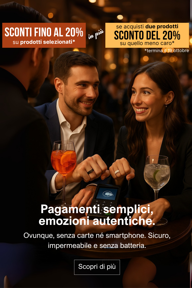 I nostri dispositivi indossabili ti consentono di effettuare pagamenti rapidi e sicuri ovunque sia accettato un metodo di pagamento contactless, semplificando ogni momento della tua vita quotidiana. Ecco alcuni dei vantaggi dei nostri prodotti: